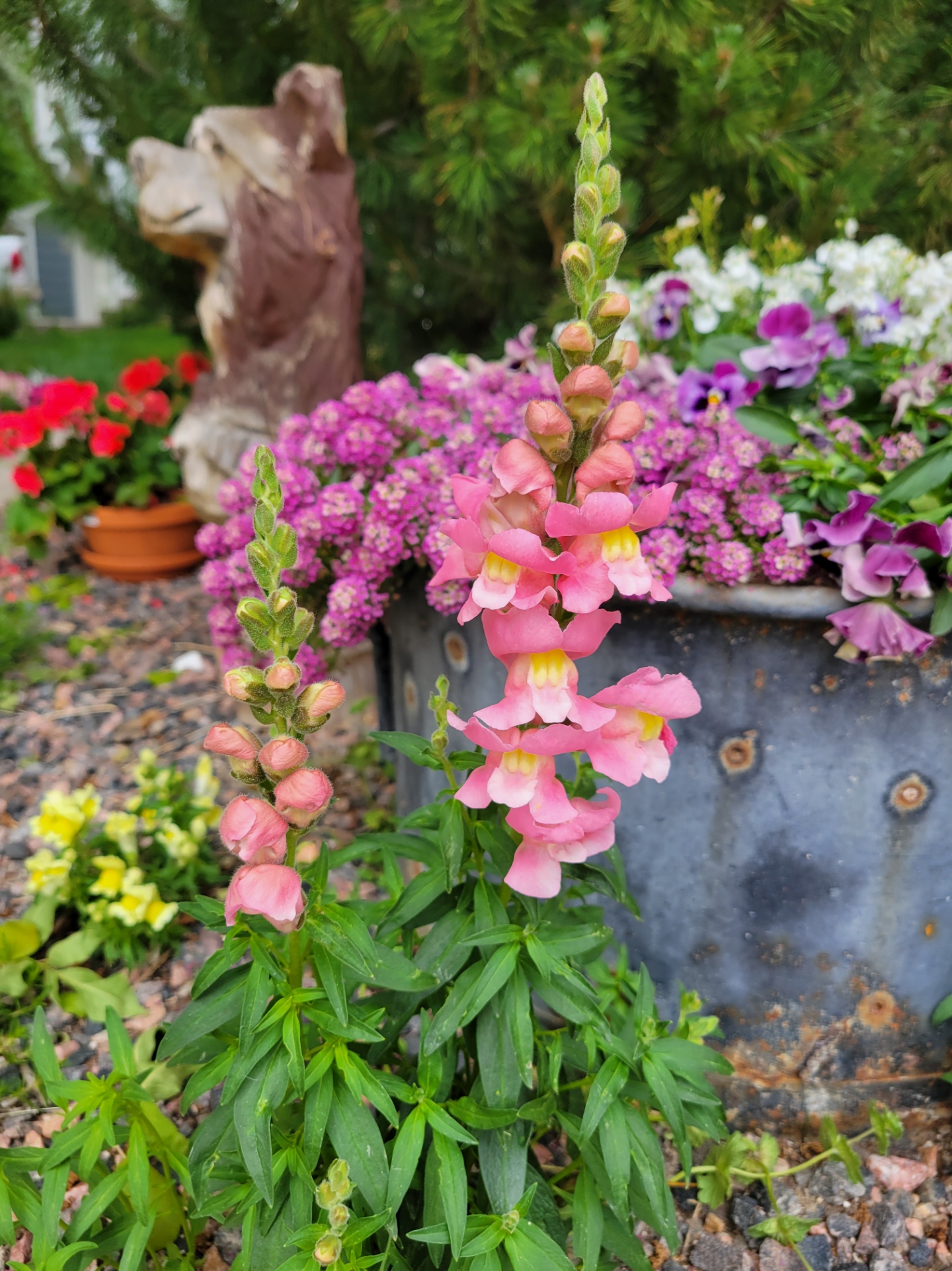Everything is growing like crazy now. The roses all made it through the late season snowstorm and there are buds everywhere but very few blooms. The snapdragons, however, are blooming their little flower hearts out.