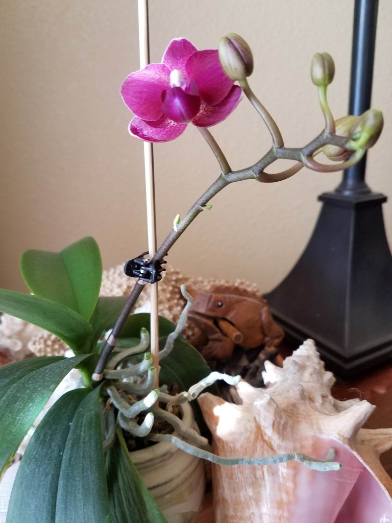 This must be starting to become a little old for all of you… I have some orchids blooming. I’m really kind of childish about them; every morning I rush to the craft room to see if I have a new bloom. Anyway, the miniature orchid opened its first bloom this week and the monster orchid has buds forming that are just… well… they are monstrous! I can’t wait for one of them to open… any day now!
