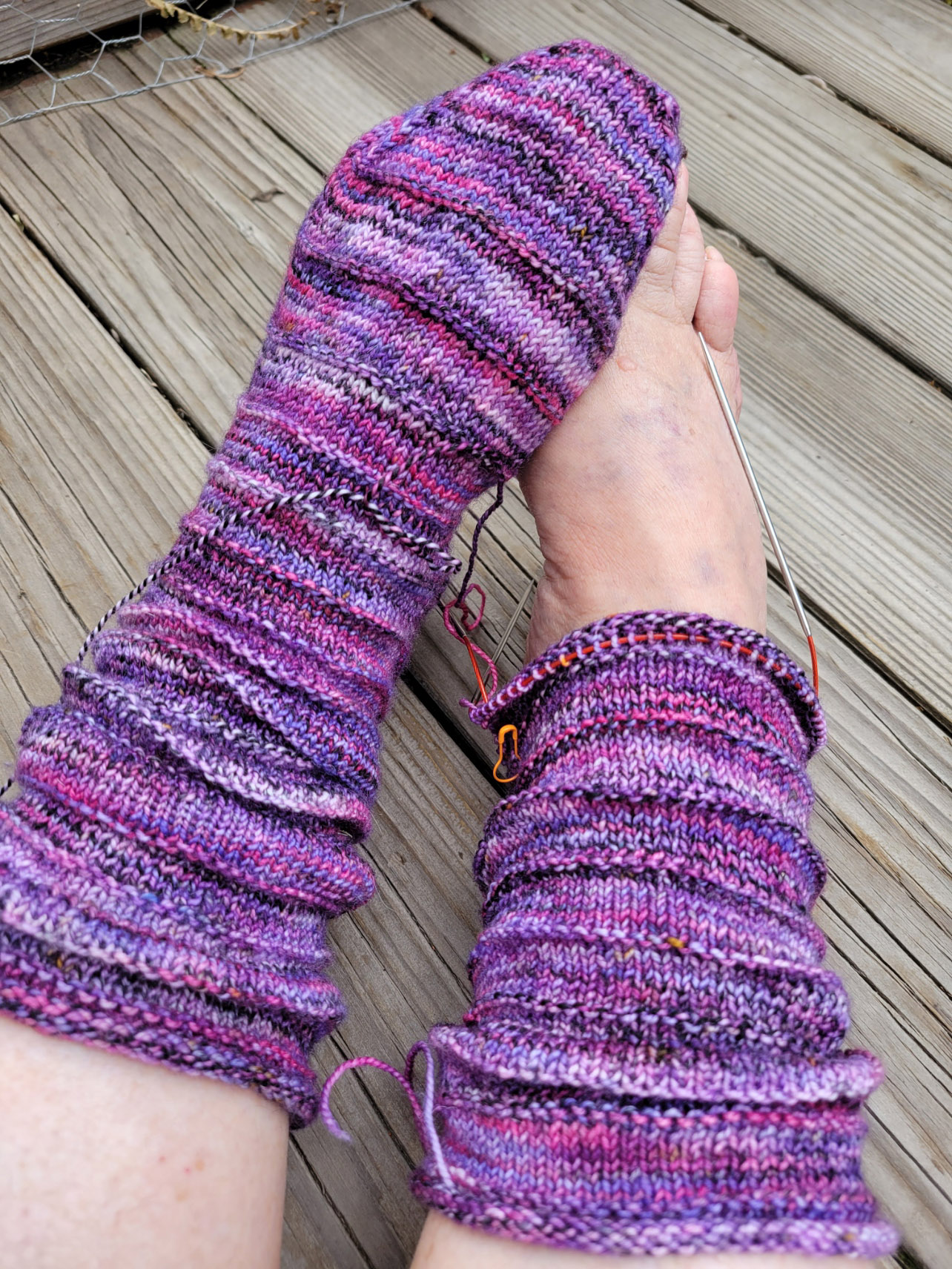 Have you wondered how the Scrunch socks that I started while struggling with tendonitis are doing?