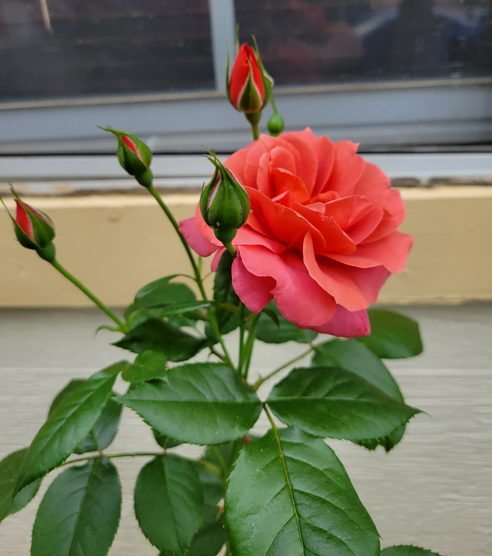 These roses are the little ones that you buy in the grocery store. I planted them outside and they really are blooming their little hearts out now!Do you see what is going on with this plant? I had to put supportive rings around it like you do with peonies because of the weight, and the buds haven’t even opened yet!!