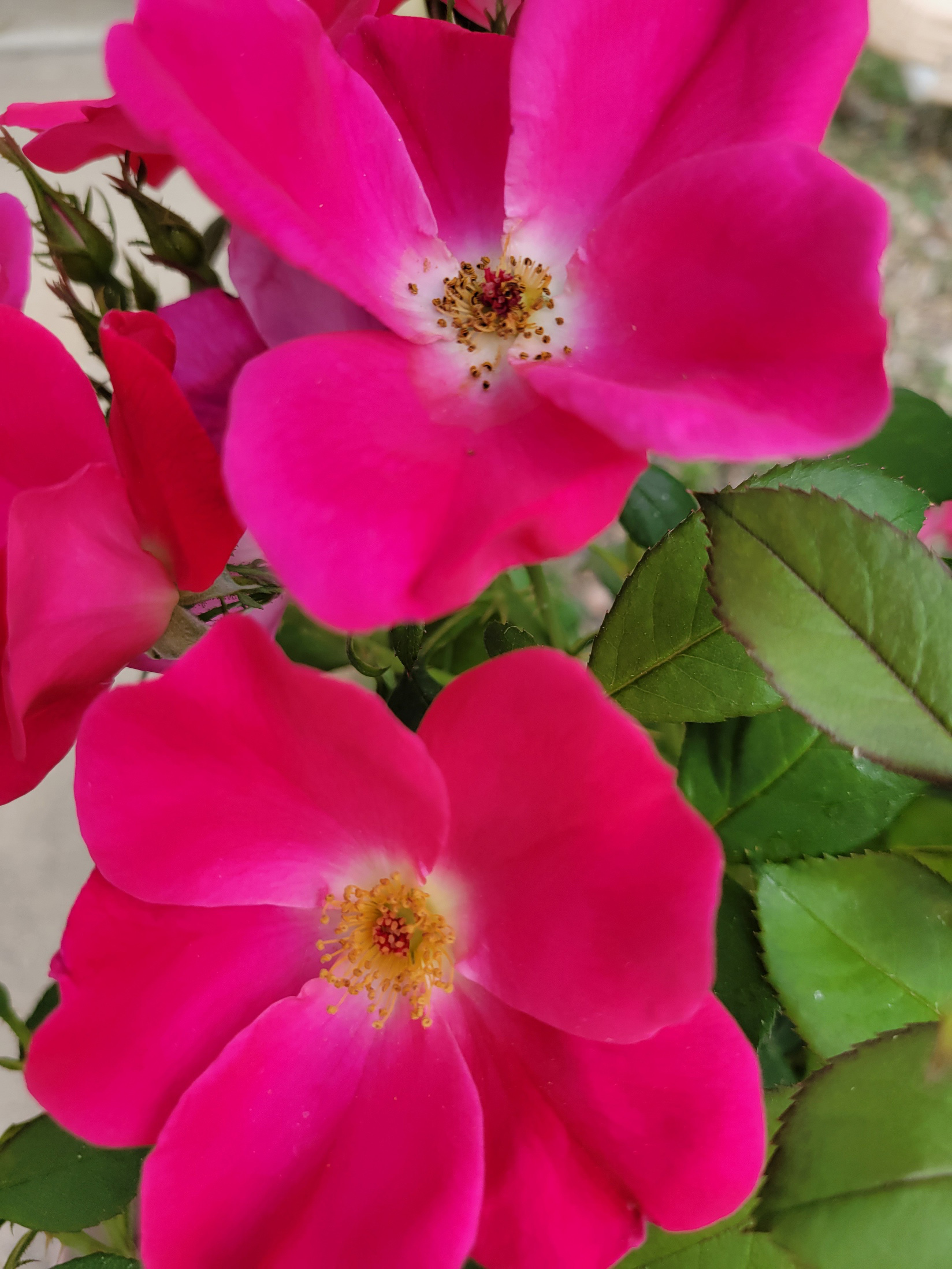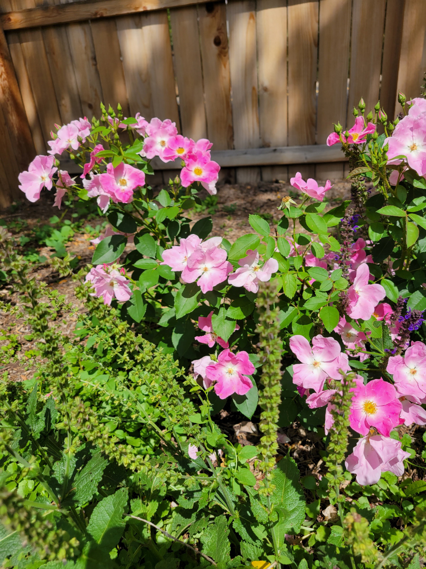 That rose is over 4 inches across, and for once the plant is sturdy enough to hold all of the blooms upright.
