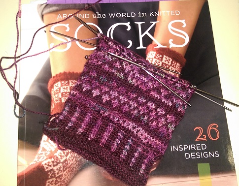 These socks, called Classic Kilim, are from the book Around the World in Knitted Socks by Stephanie van der Linden. The socks were supposed to have tassels and embroidery; that so did not happen!!Here is the info on Ravelry with more info about the book. My notes on Ravelry are here.
