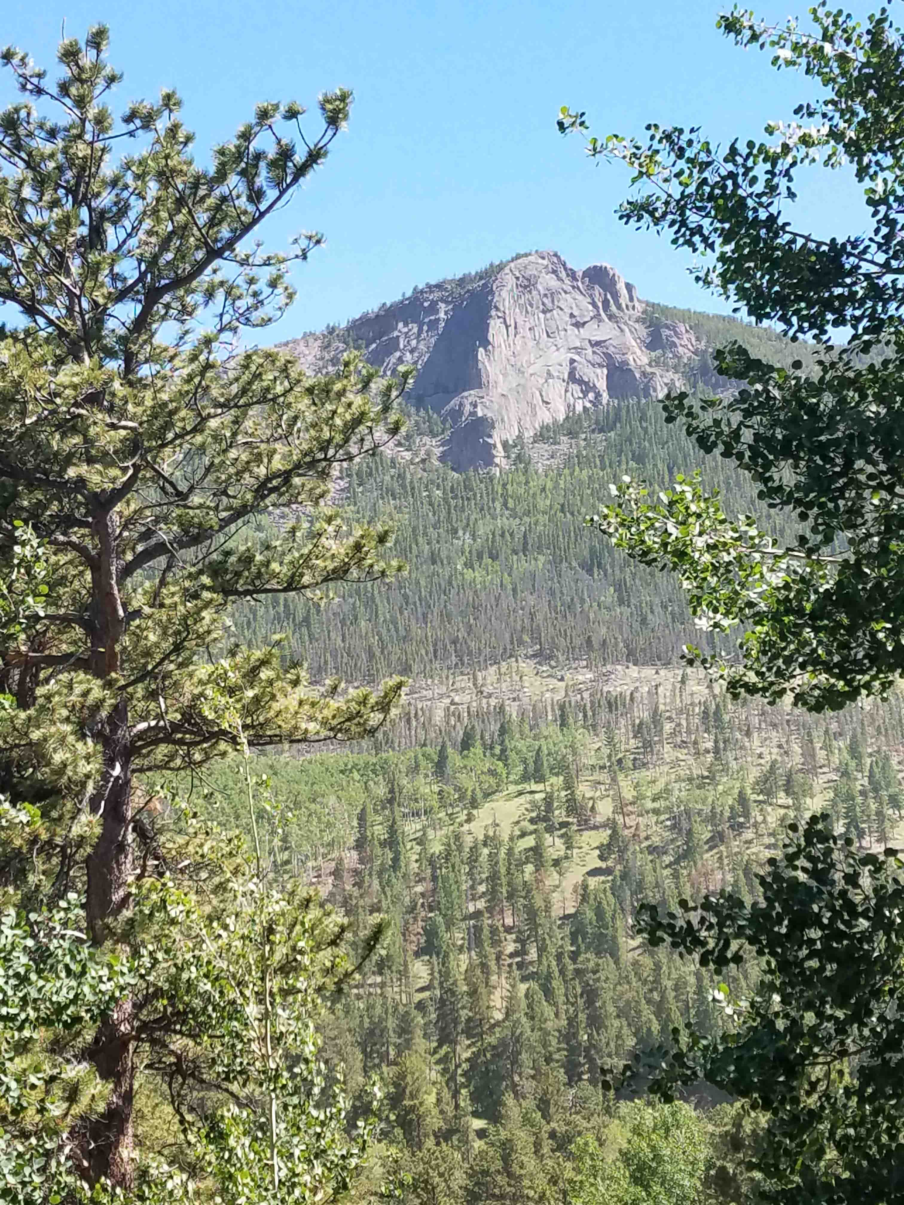 Trees in Rocky Mountain National Park. The large tree on the left is a ponderosa pine.