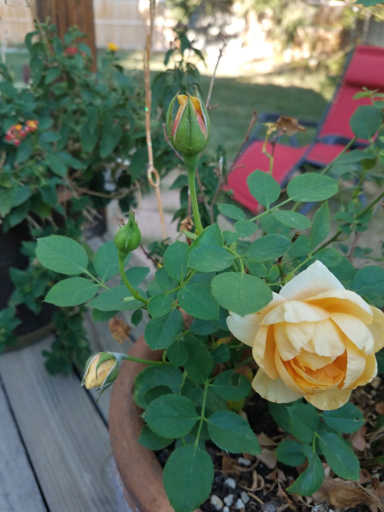 The weather was cool for several days before the thermostat went back up into the high 90’s. Many of the potted plants were able to recover over the last week, and things are looking pretty cheerful out front again.