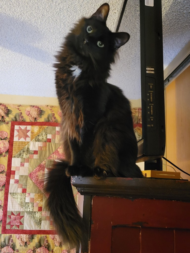 It’s my favorite day of the week. I get to go out first thing in the morning with the Orange Monster to check out things on the catio. We see birds, and squirrels and lots of fun things while we are out there. We also get our paws cold, but that’s okay, because if you want to play with the Orange Monster, you have to be willing to deal with little stuff like that!
