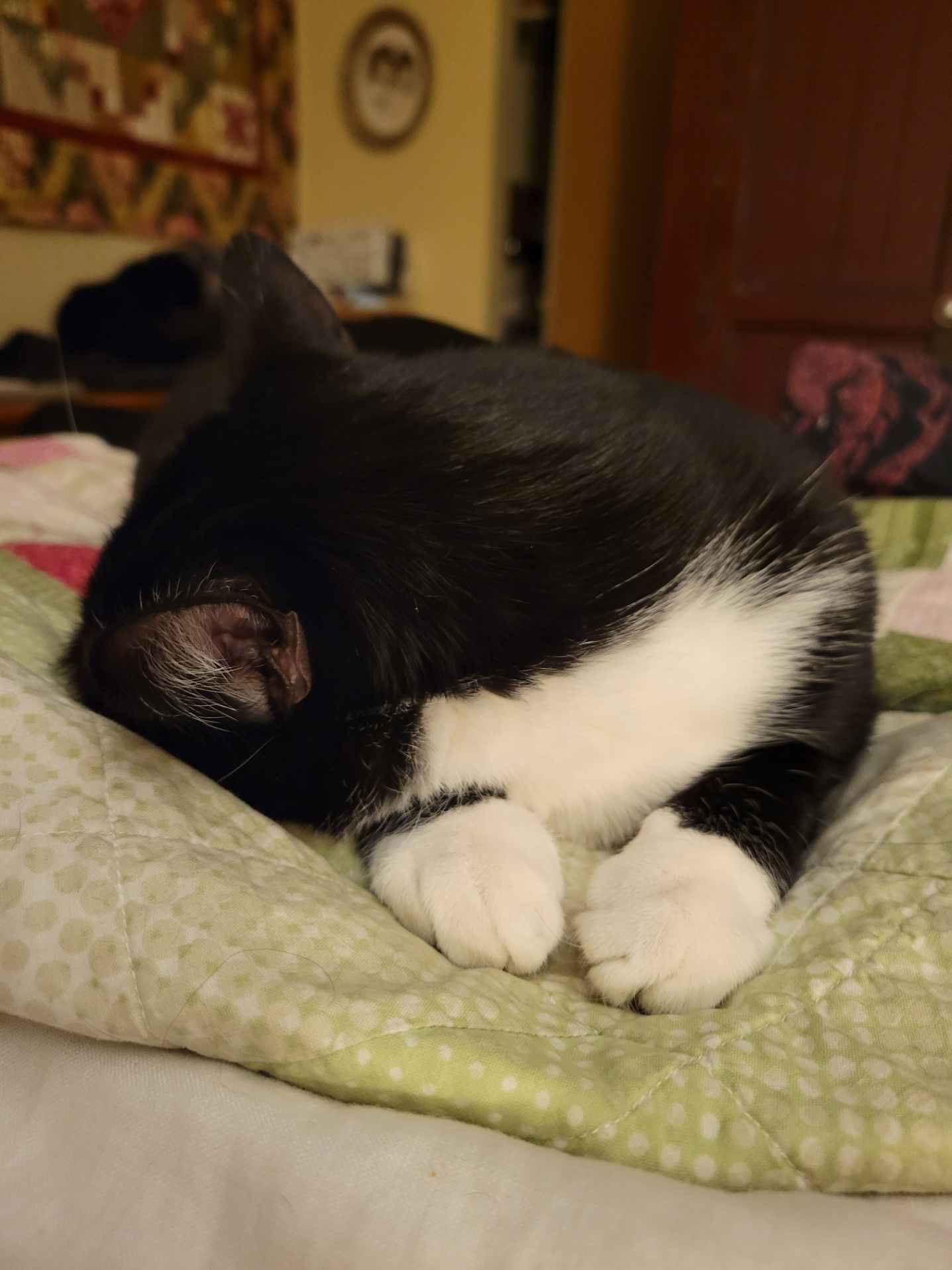 After watching lots of YouTube videos and downloading a chart I found online I created the double-knit sample of… of course it is a cat paw!! I also got those baby booties done for the next-door neighbor who had a new arrival last April right before my surgery in May.