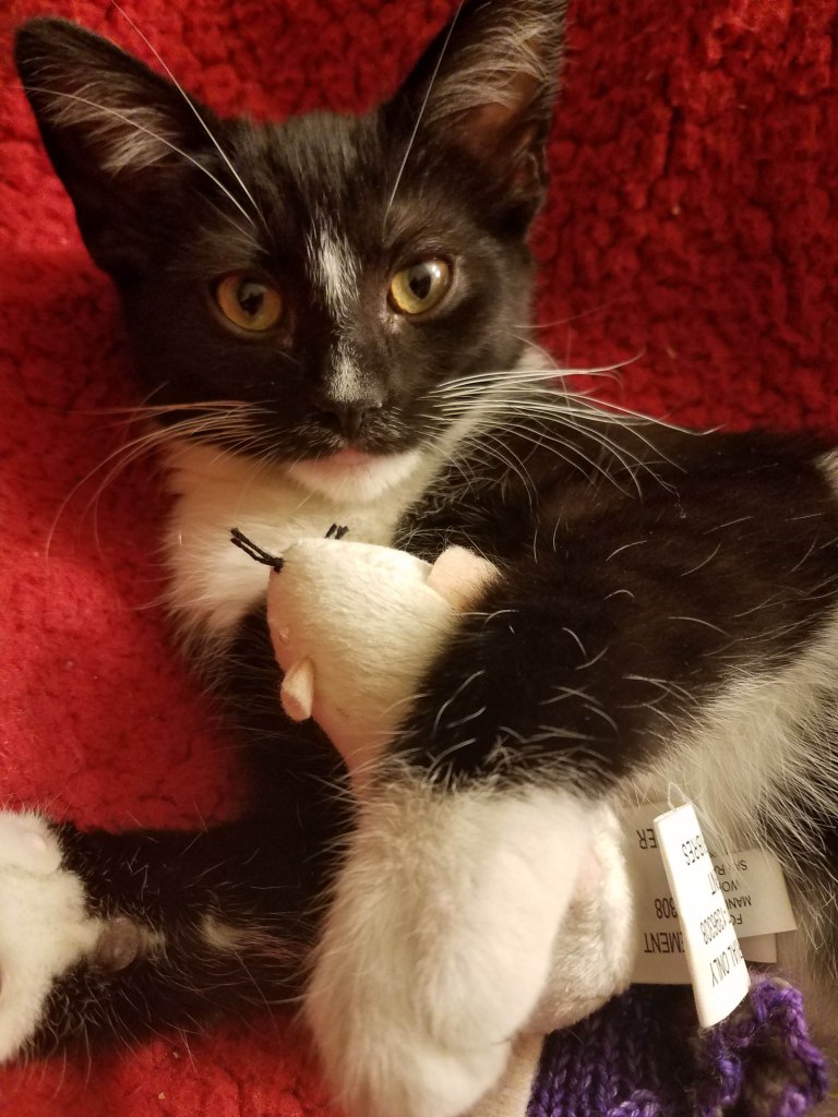 I’ve been very busy the last two weeks. I’m growing like a weed (that’s what Kitten Mom says…) and I’m learning lots of new things and developing some wonderful skills. I can now streak up the screen door all the way to the top every time the Kitten Mom tries to come in! I love to race through my crackly tube when we go downstairs. I can jump higher and race faster then ever, and there are so many wonderful things that I can do now.