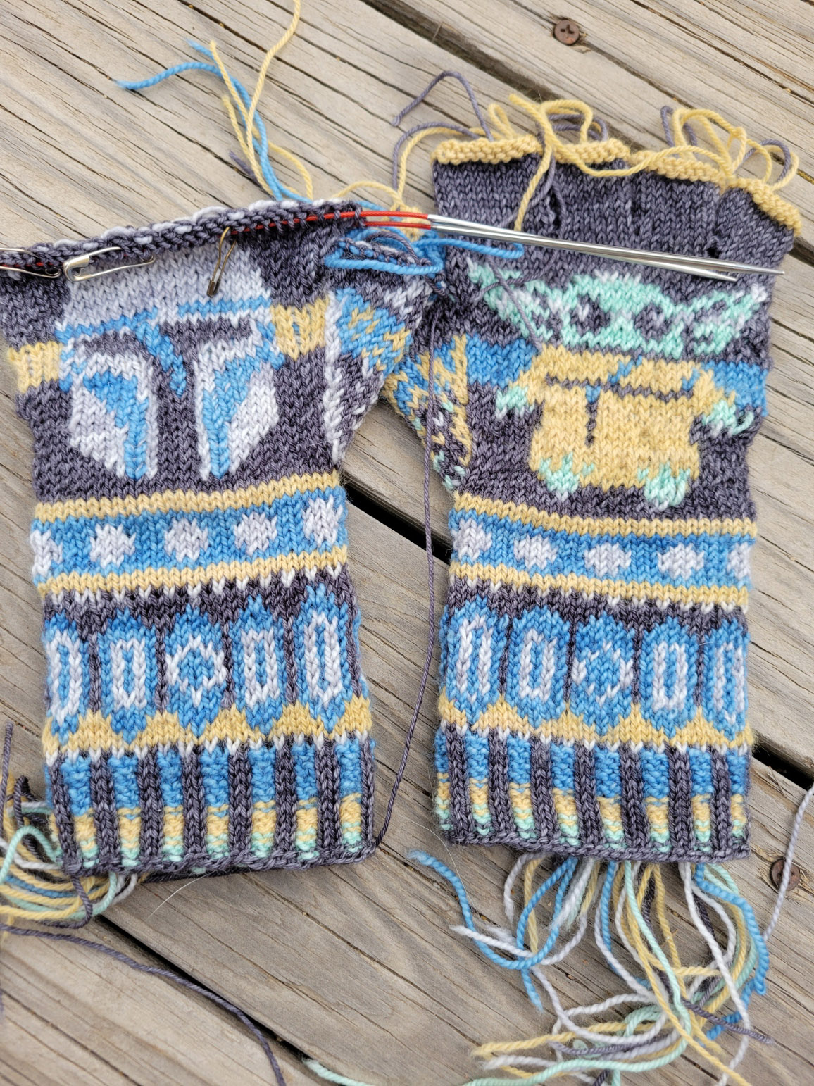 I’m working steadily on the mitts for my knitworthy niece who is a huge fan of all things Mandalorian. I am now up to the fingers of the second mitt.